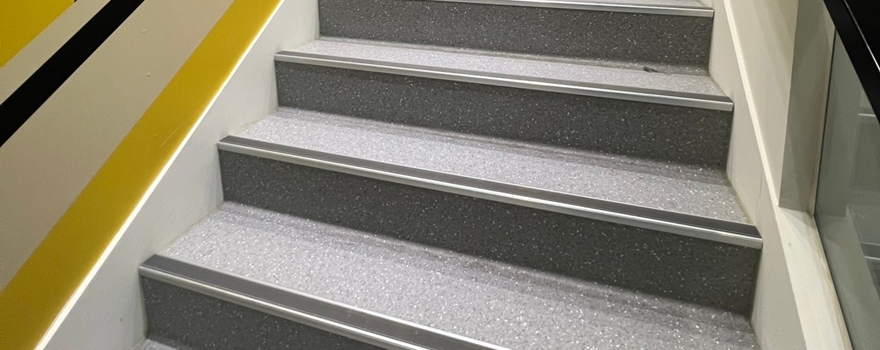 崁入式壓條分為兩個部分,具有高質感的金屬底座以及各色繽紛的軟質膠條,可用於樓梯收邊,除了使用黏貼,也可使用螺絲安裝,因此在安全性及穩固性上是最具品質的壓條選擇,非常適合公共空間、賣場、商場百貨,等人流量高的空間!